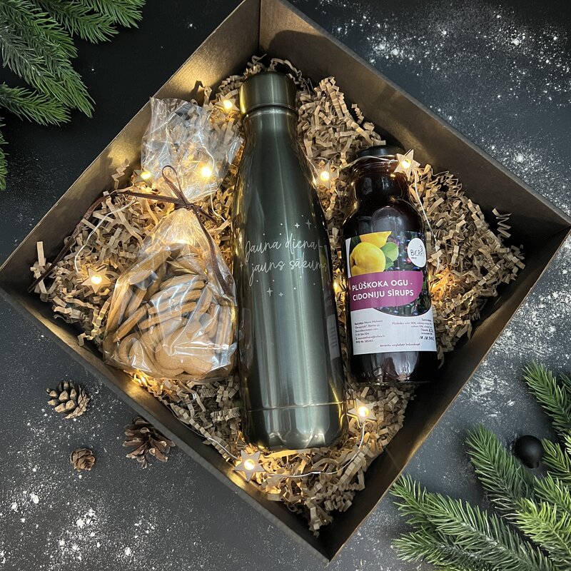Ziemas dāvanu komplekts “Ziemassvētku malks” būs silta, mīļa un lietderīga dāvana ikdienas motivācijai ikvienam, kuram patīk doties ārpus mājas, lai tvertu ne tikai ikdienas darbus, bet arī pasakainos mirkļus sasnigušā ceļa pavadītā pastaigā.