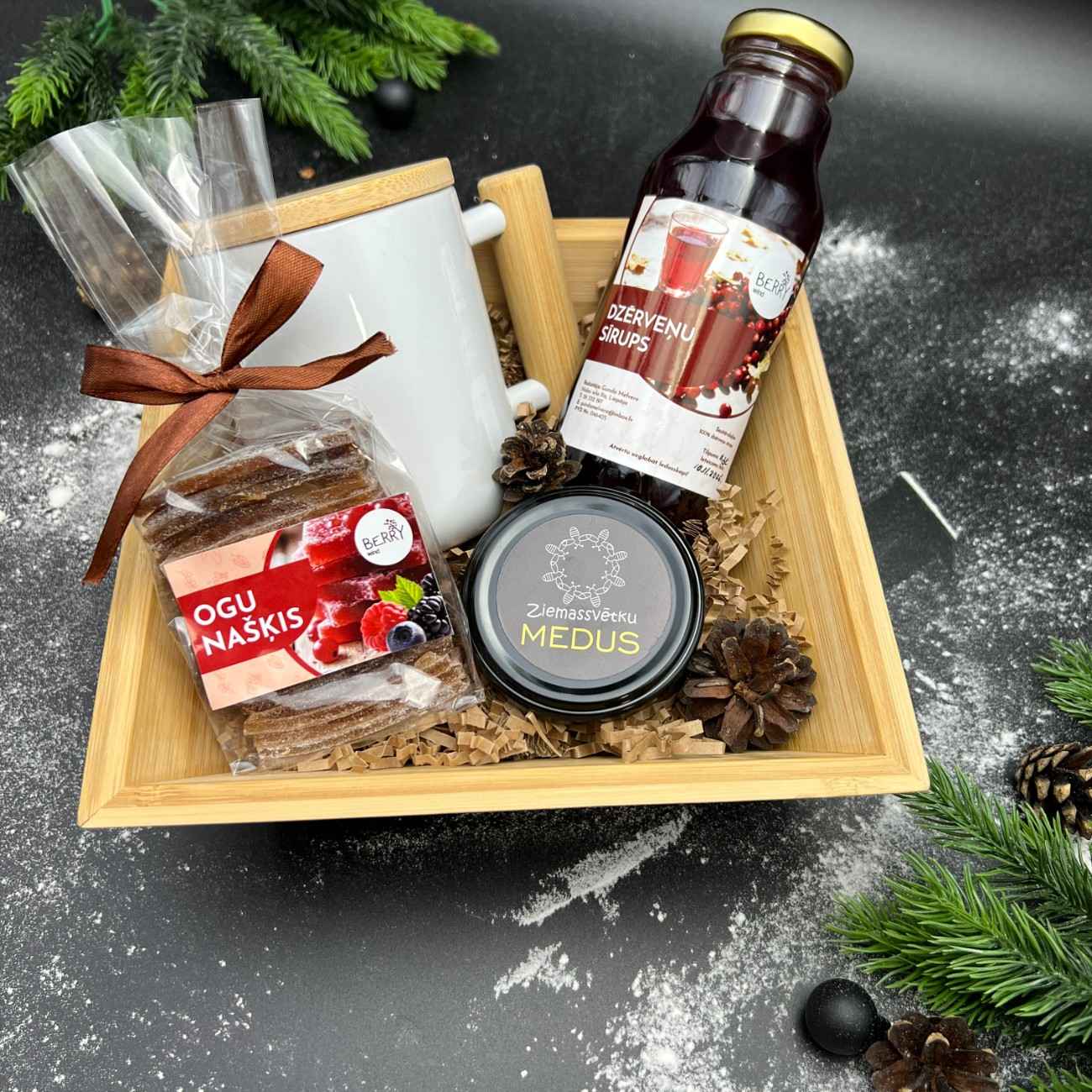 – Latvijas bišu saimes “Birzmaļi” Ziemassvētku medus, 130g;